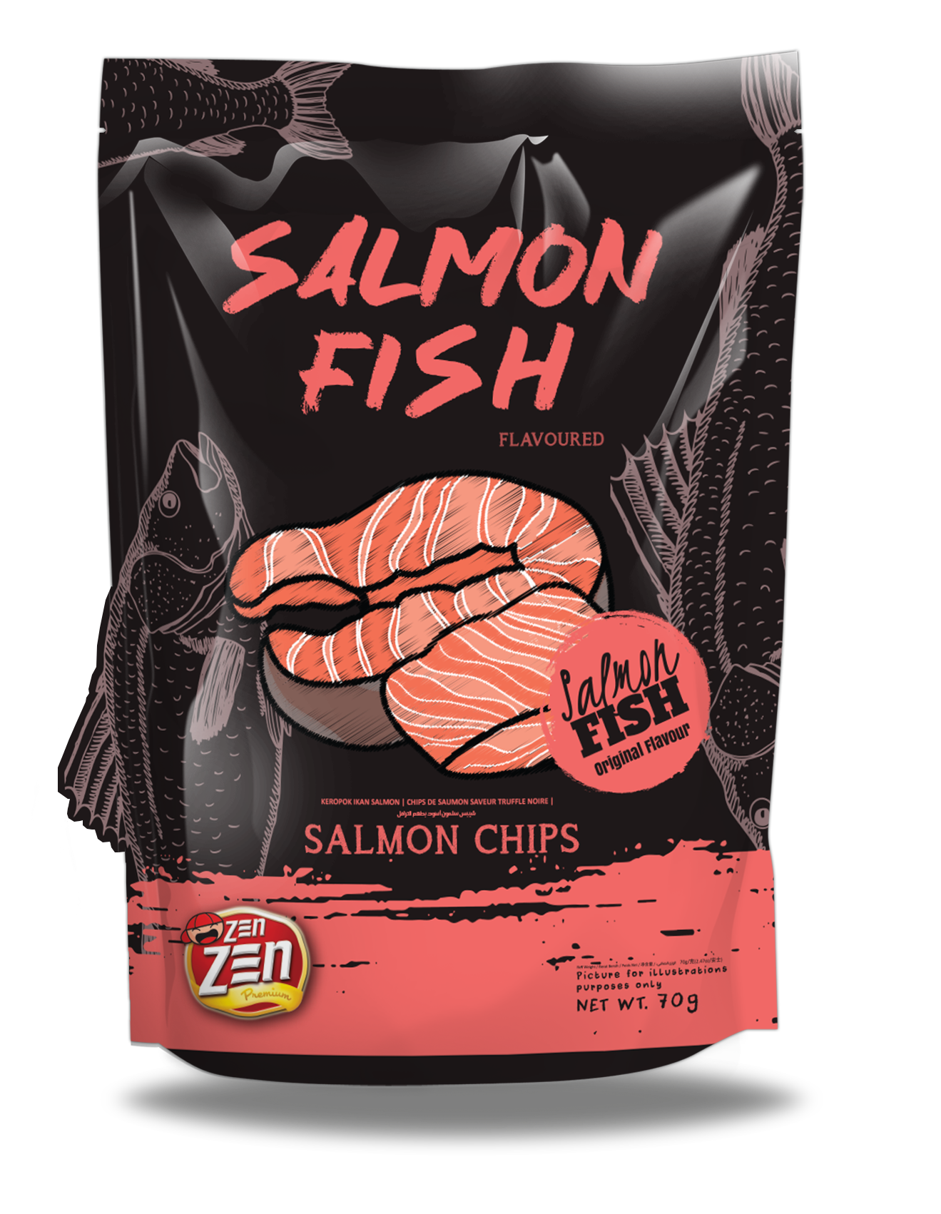 含有5%真正三文魚肉的優質脆片,採用油炸工藝呈現金黃酥脆口感,天然魚肉風味與眾不同!70g大包裝,一片又一片停不到口!